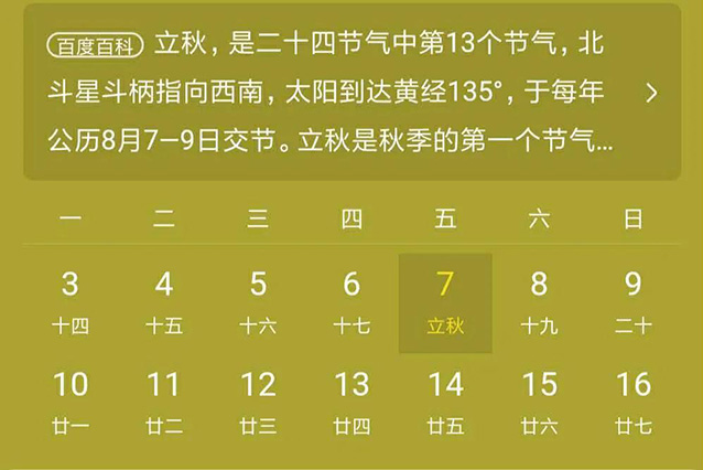 The beginning of autumn is the first solar term in autumn